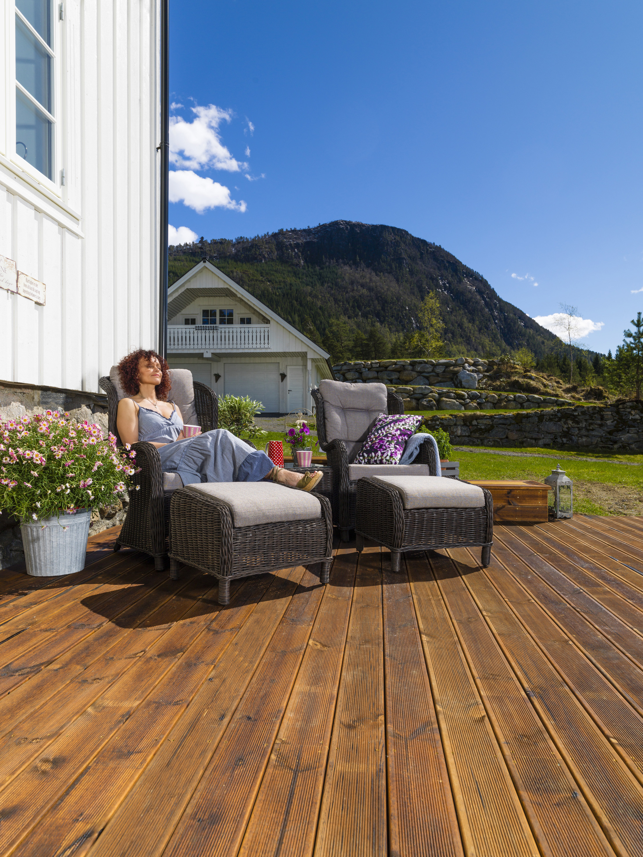 Terrassen har et tøft liv. Med mindre den er helt overbygd utsettes den for en kompleks kombinasjon av lysstråler, varme, kulde, regn, fukt og mikroorganismer. Hva slags materiale som til syvende og sist er best egnet i forhold til levetid og vedlikehold finnes det ingen fasit på.