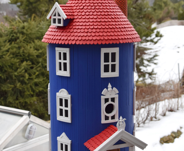 Det var Helle som ønsket seg et Mummi-hus. Hun har alltid vært fascinert av Tove Janssons finske eventyr om Mummitrollet og Lille My. Ole fant en liten tegning han skrev ut på printeren, og så har han kopiert huset millimeter for millimeter. Sist vår flyttet et lite par inn i fuglekassen Ole hadde laget. Fire eller fem unger ble fostret opp av travle foreldre. Nå lurer Ole og Helle på om noen vil leie i det nye huset, og om det vil være plass til mer enn én familie. Leieinntekter forventer de ikke.