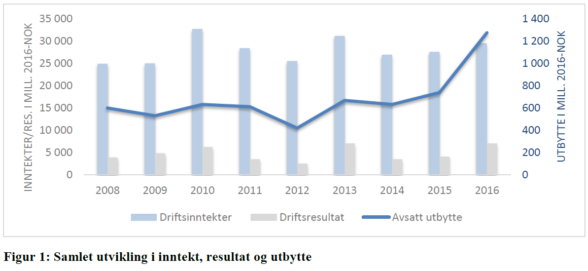Samlet avsatt utbytte økte fra omtrent 600 millioner i 2008 til nær 1,3 milliarder i 2016. Det utgjør en vekst på hele 113 prosent i perioden.