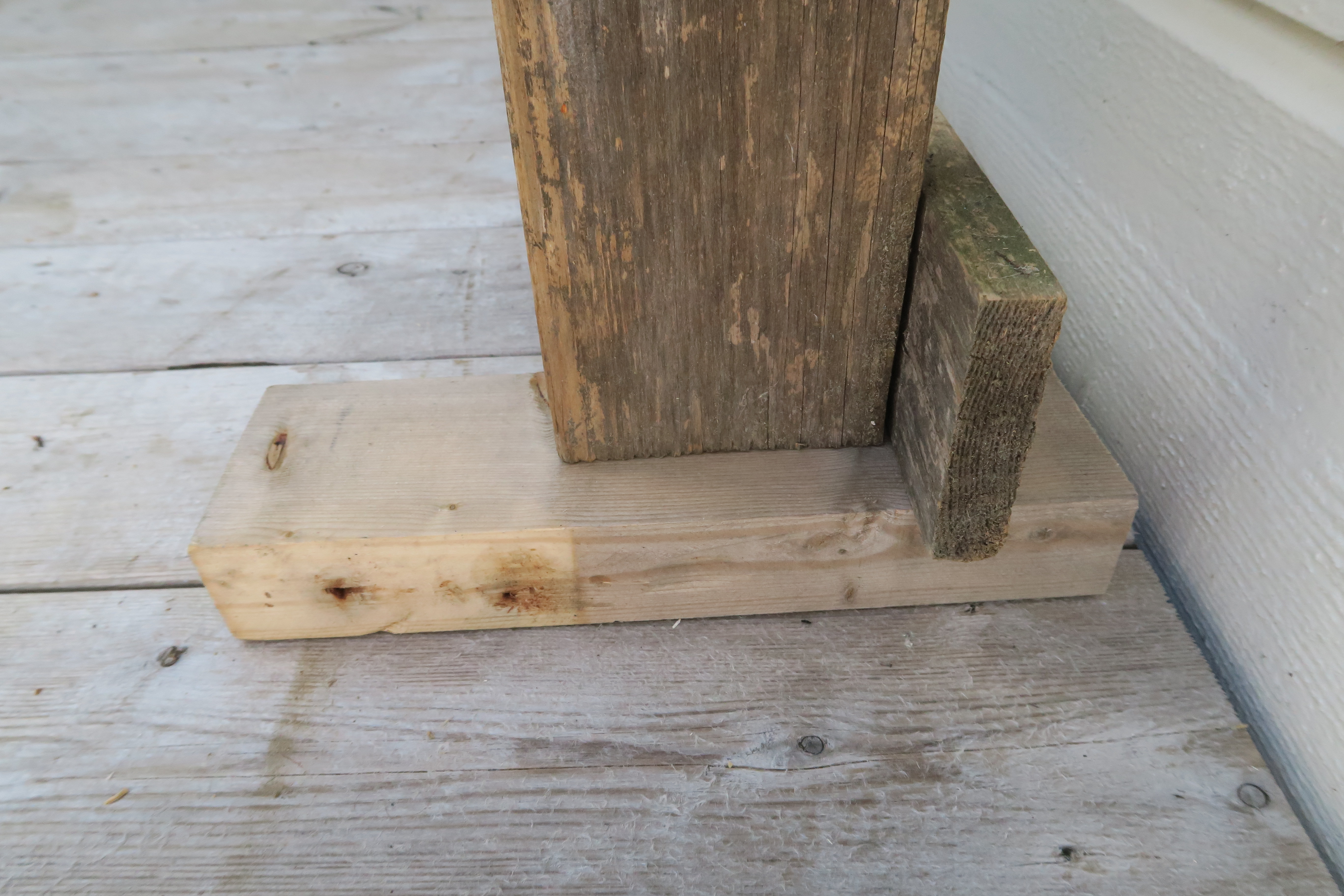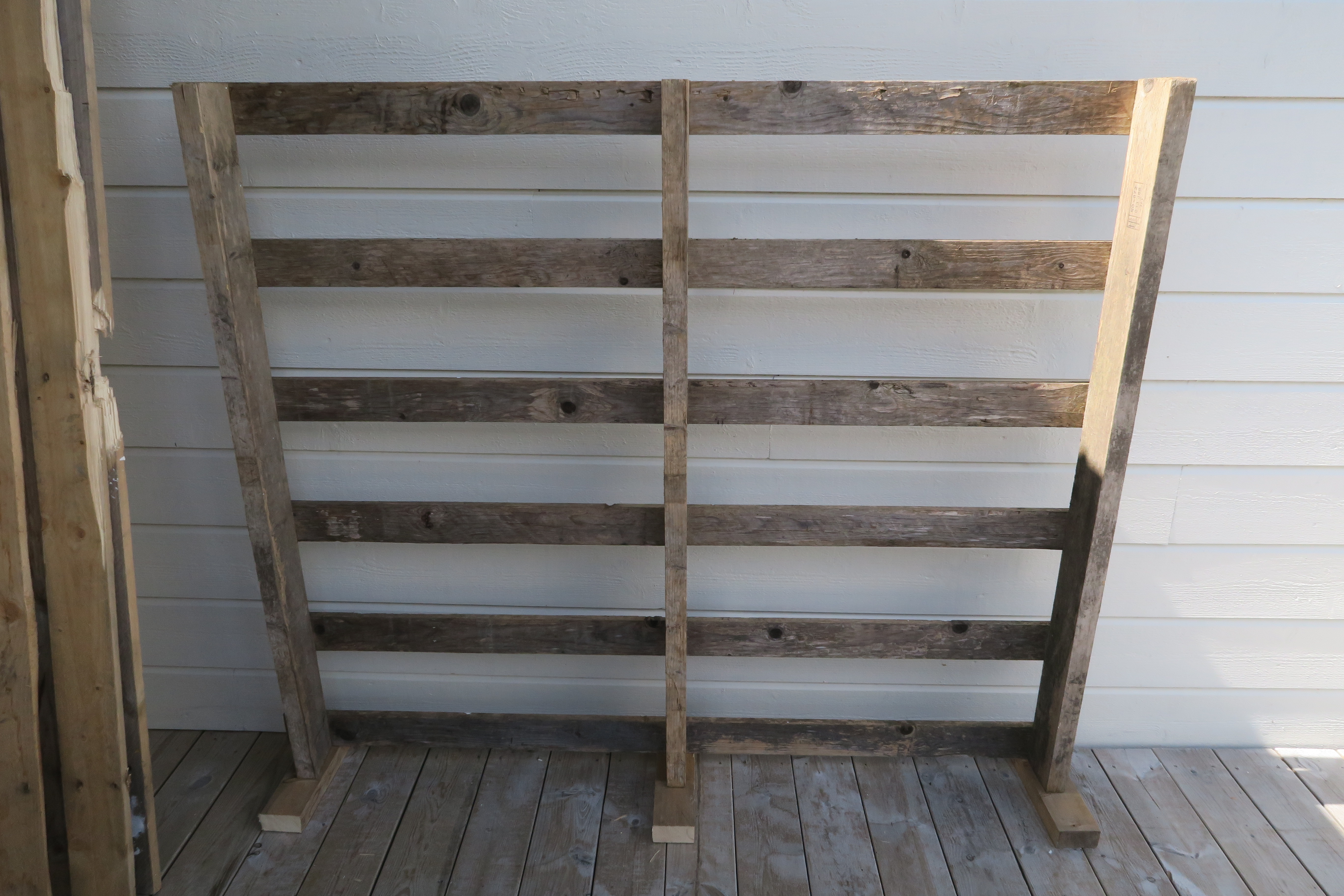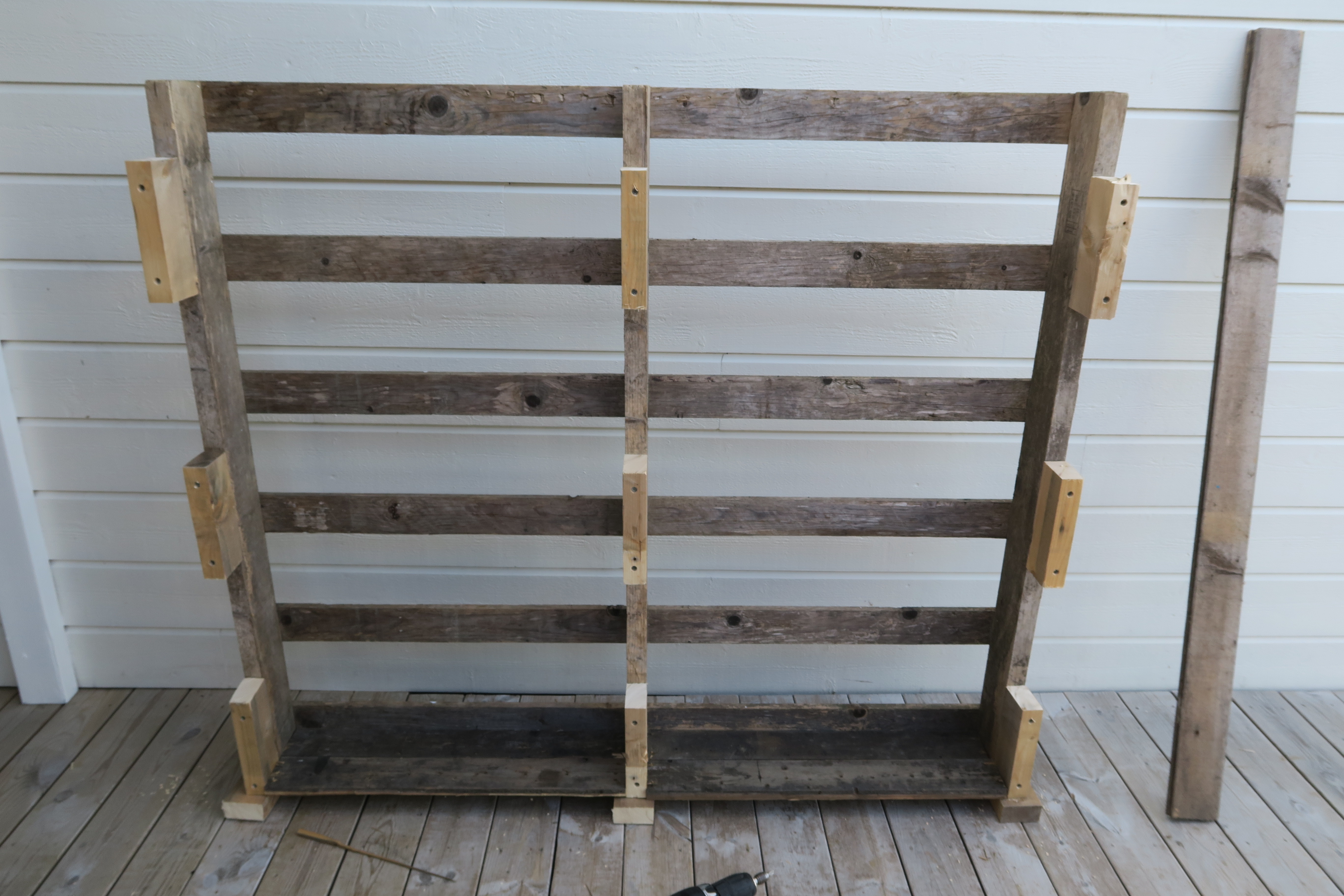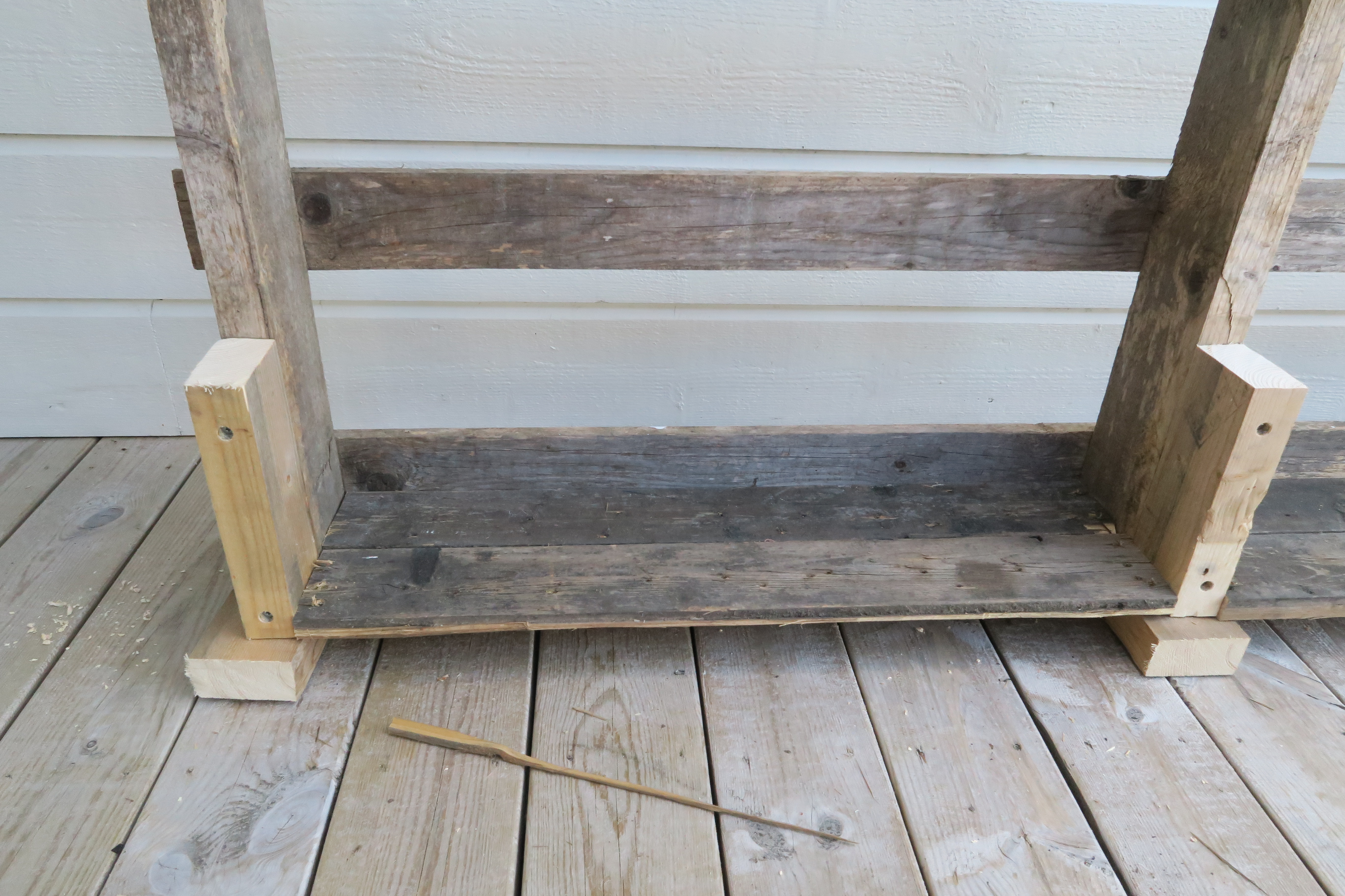 En bjelke sages opp og brukes til føtter på den pallen som er selve rammen slik at den står støtt.
