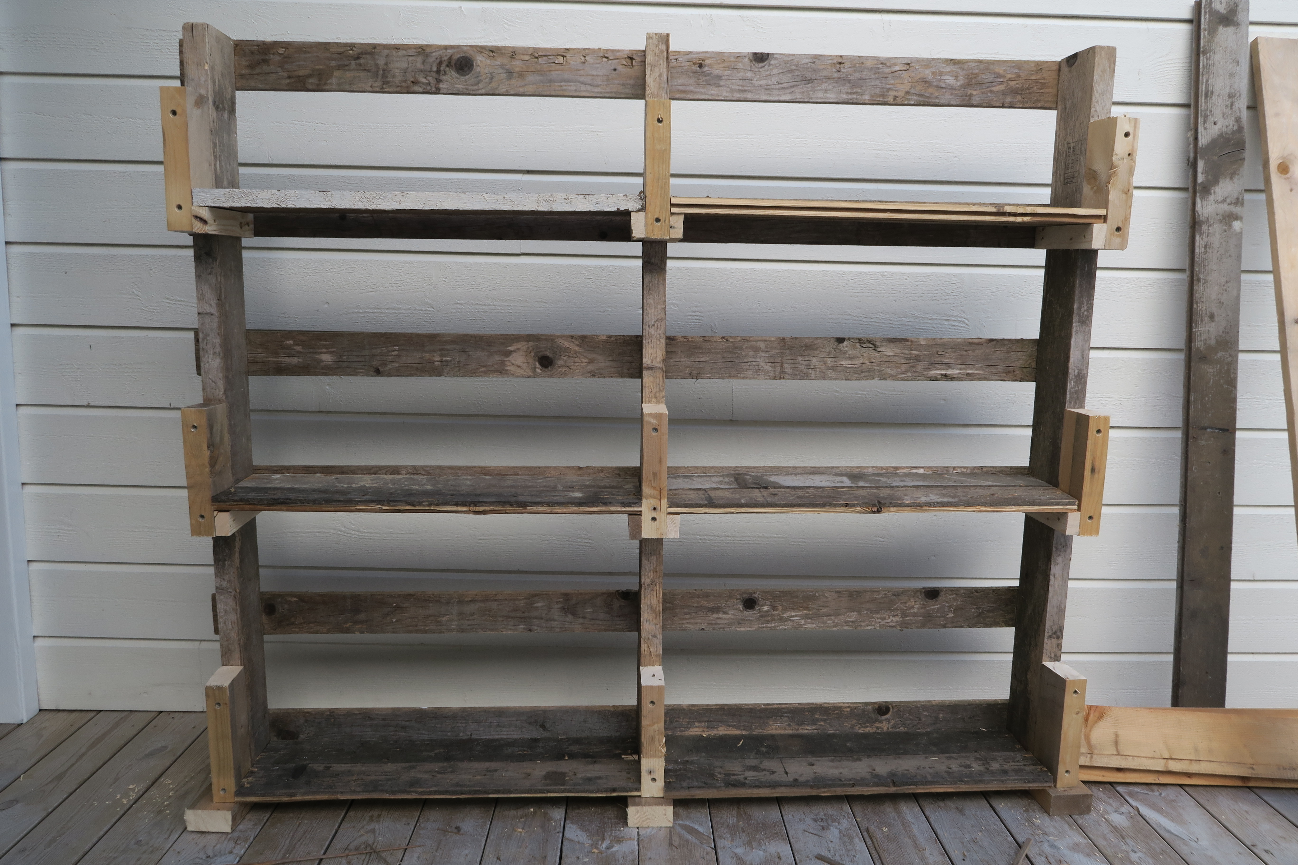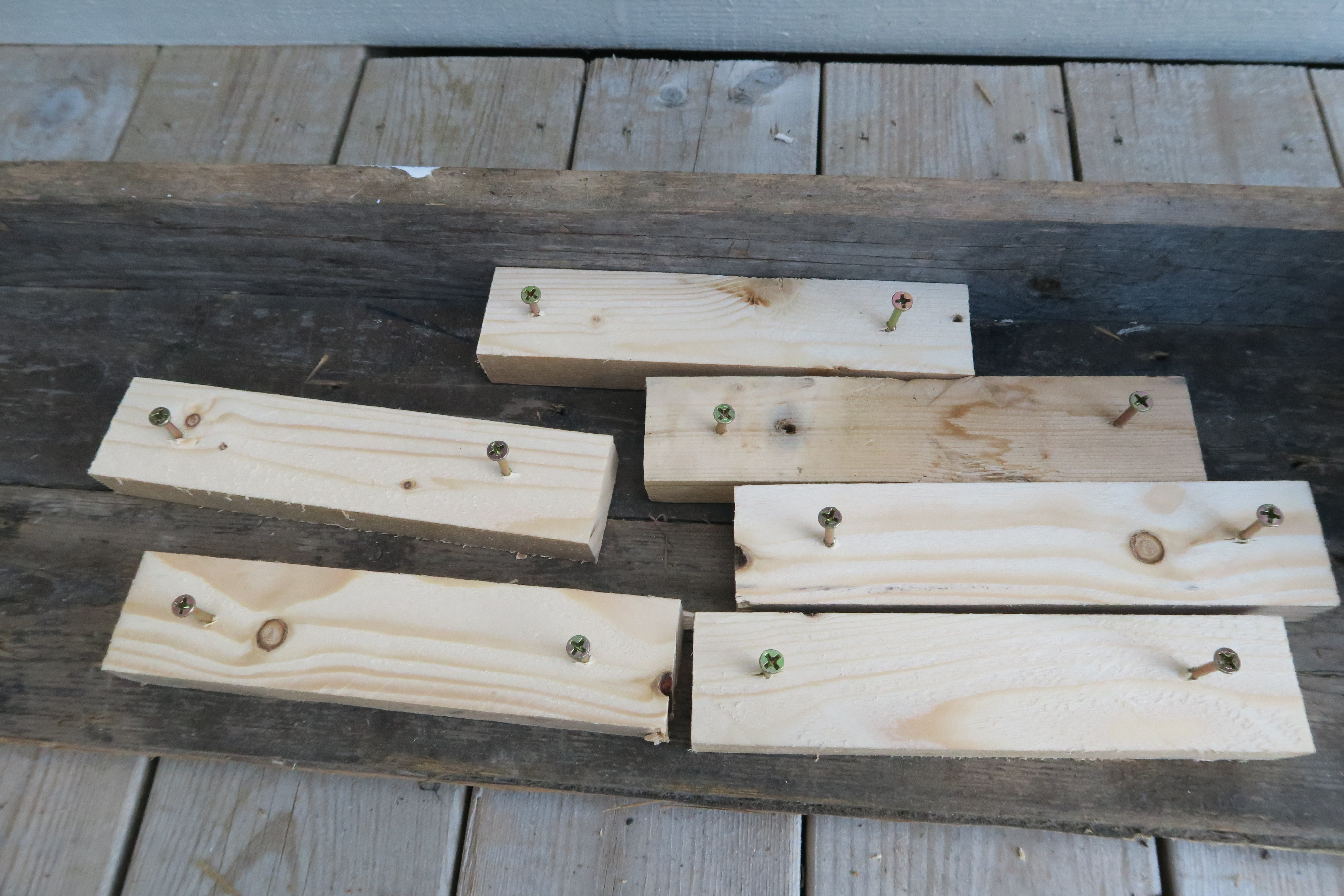 Men for de andre hyllene, må det lages "hylleknekter" av klosser som plankene kan legges på.